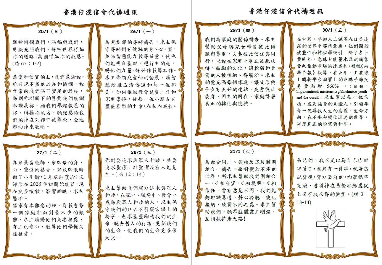 代禱週訊25Jan2026